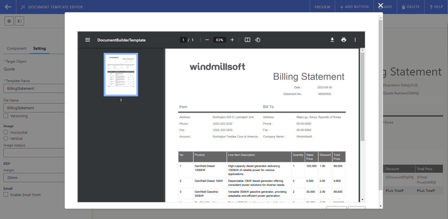* Enter the Target Object (e.g. Quote), a template name, and save to create a placeholder for the invoice.