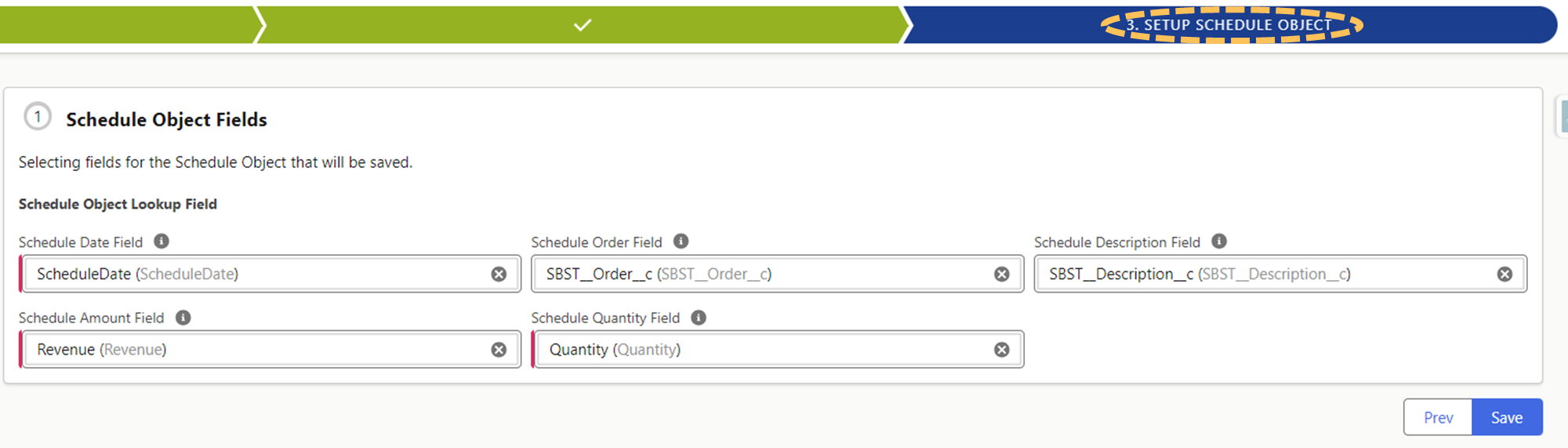 Select the fields in the Schedule Object that you want to use when editing and saving the schedule.